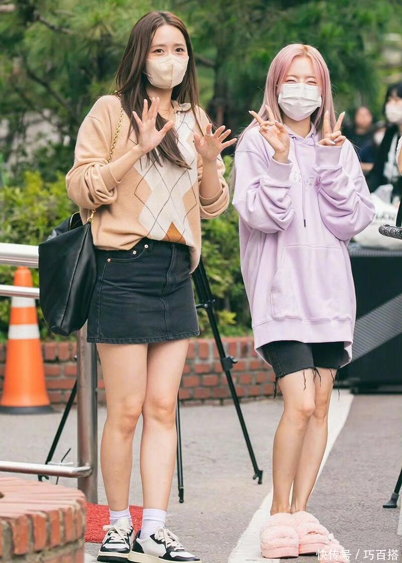 小腿外翻外加有点O型腿的林允儿为我们提供了不少穿搭思路,比如,下衣失踪穿衣方式,上半身包裹严实下半身直接露腿,利用外露皮肤转移人们的注意力,腿型不完美也无关紧要。