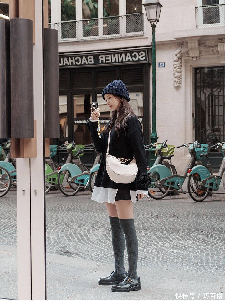 有时又会选择休闲运动鞋搭配中筒袜,选择乐福鞋搭配中筒袜时,林允儿会优先考虑百褶短裙与之搭配,上衣为名媛风小香风外套,精致耐看,高级又利落,秋冬天外穿出门,贼有精气神。